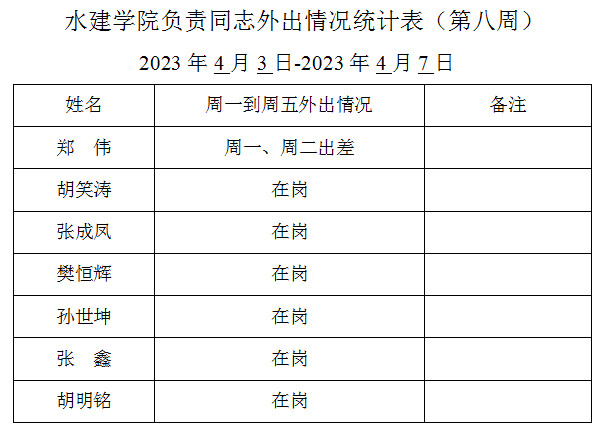 英国365集团官网负责同志外出情况统计表(第八周)
