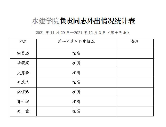 英国365集团官网负责同志外出情况统计表(第十五周)