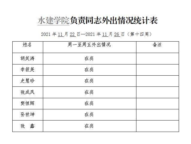 英国365集团官网负责同志外出情况统计表(第十四周)
