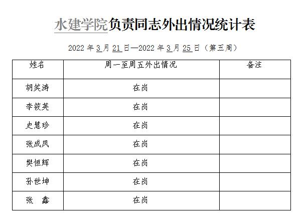 英国365集团官网负责同志外出情况统计表(第五周)