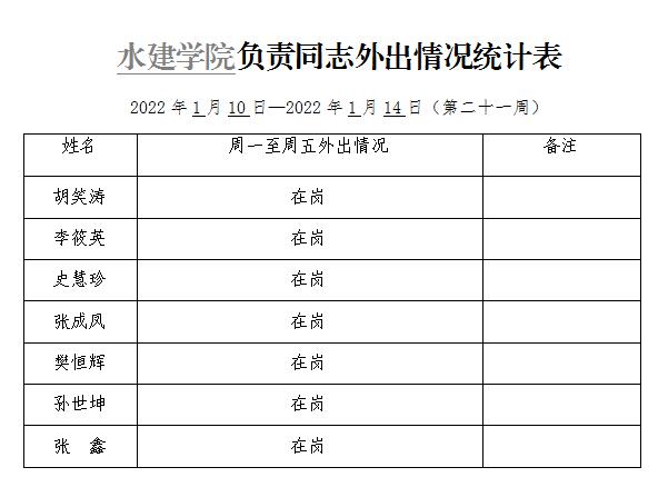英国365集团官网负责同志外出情况统计表(第二十一周)