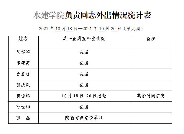 » 英国365集团官网负责同志外出情况统计表(第九周)