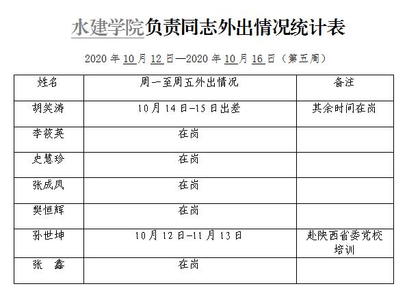 英国365集团官网负责同志外出情况统计表(第五周)