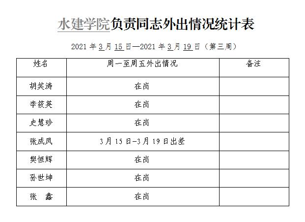 英国365集团官网负责同志外出情况统计表(第三周)