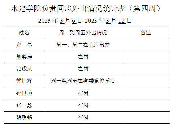 英国365集团官网负责同志外出情况统计表(第四周)