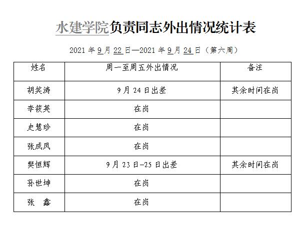 英国365集团官网负责同志外出情况统计表(第六周)