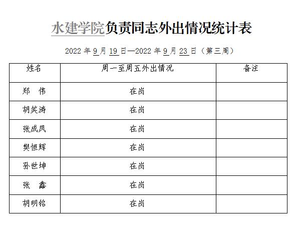 英国365集团官网负责同志外出情况统计表(第三周)