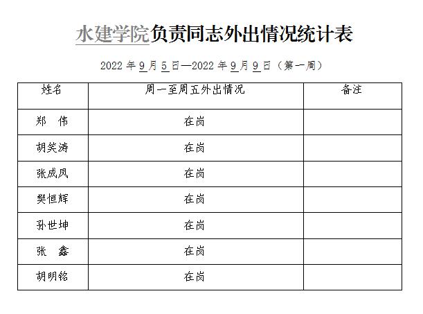 英国365集团官网负责同志外出情况统计表(第一周)
