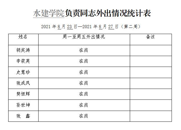 英国365集团官网负责同志外出情况统计表(第二周)