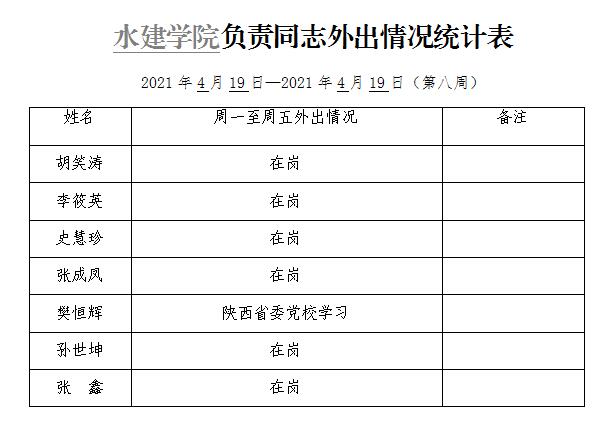 » 英国365集团官网负责同志外出情况统计表(第八周)