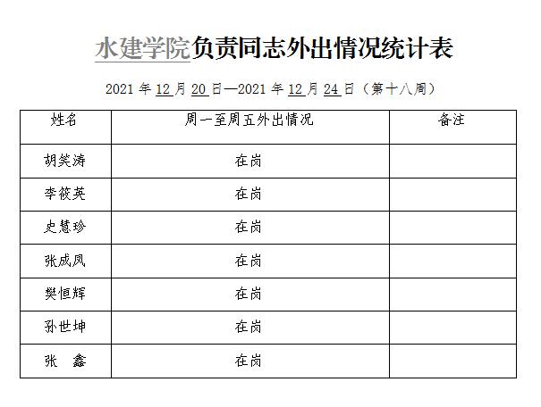 英国365集团官网负责同志外出情况统计表(第十八周)
