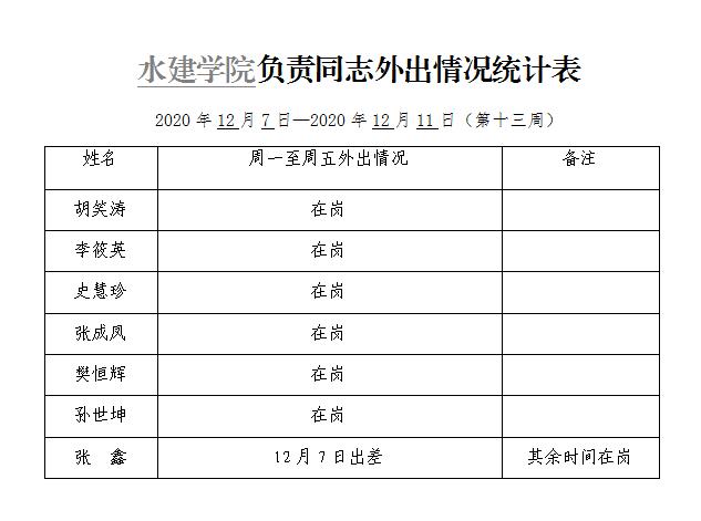 英国365集团官网负责同志外出情况统计表(第十三周)