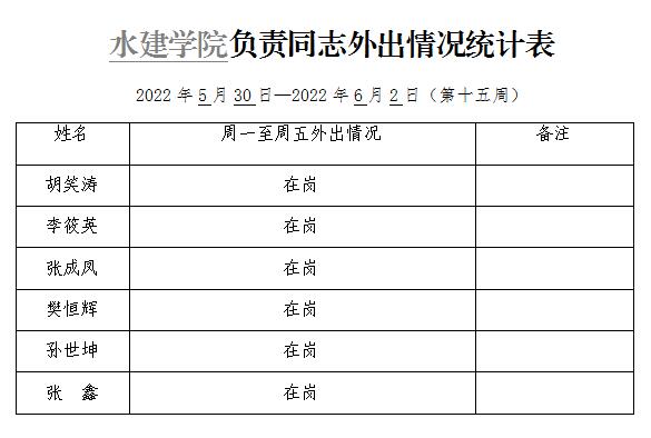 英国365集团官网负责同志外出情况统计表(第十五周)