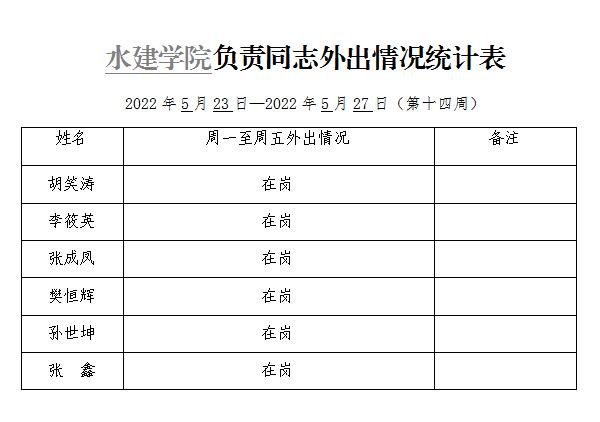 英国365集团官网负责同志外出情况统计表(第十四周)