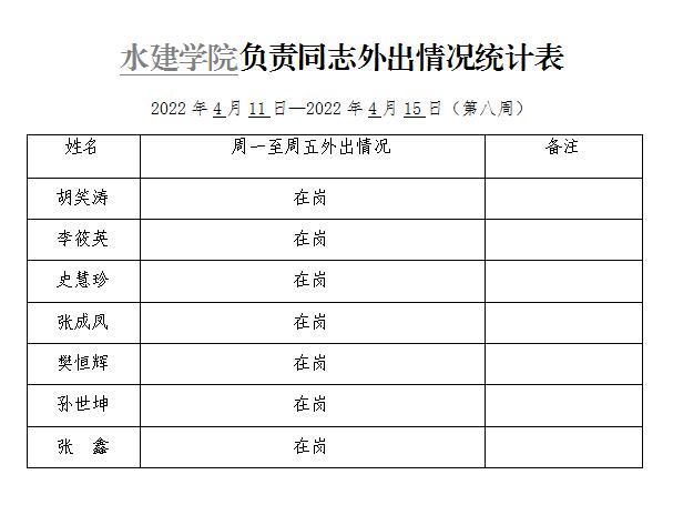 » 英国365集团官网负责同志外出情况统计表(第八周)