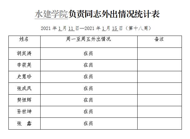 英国365集团官网负责同志外出情况统计表(第十八周)
