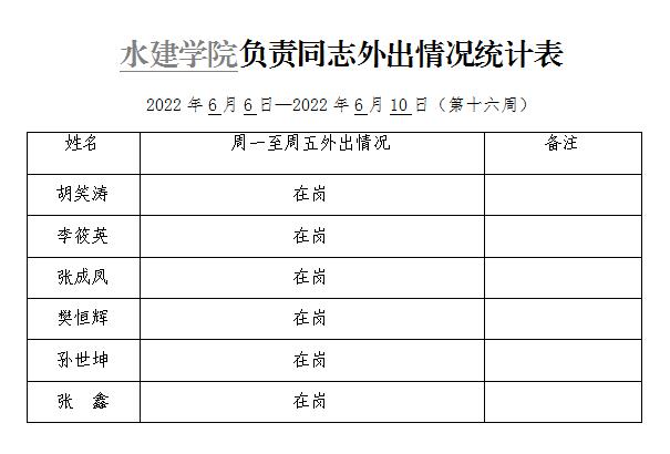 英国365集团官网负责同志外出情况统计表(第十六周)