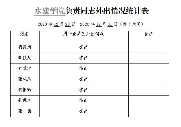 英国365集团官网负责同志外出情况统计表(第十六周)
