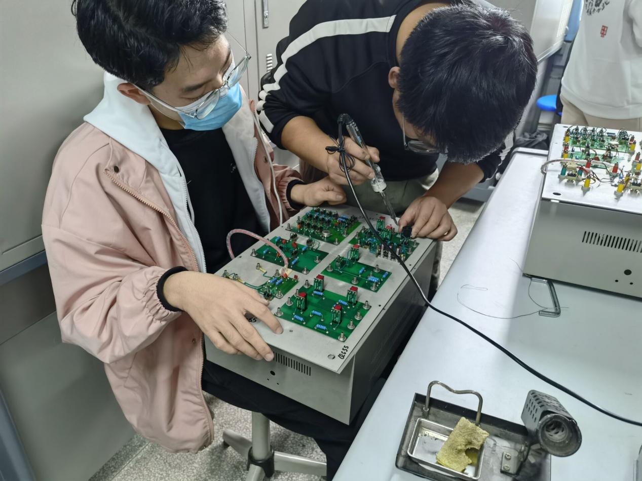 活动前期,两位社团负责人提前敲定场地,为大家准备好万用表、电烙铁、焊接工具和预先设置故障点的电路实验挂箱,为活动的举办做好了充分的准备。