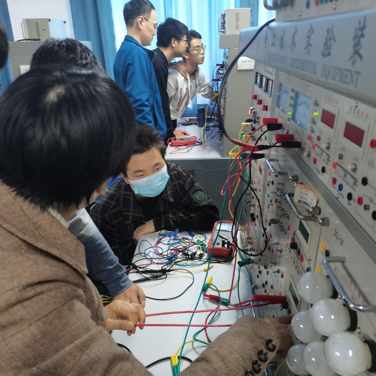 活动首先从日光灯的组成、功率因数的概念讲起,在指导老师耐心详细的讲解下,同学们了解了日光灯的镇流器、启辉器、灯丝等内部组成,并深入了解了改善功率因数的意义,知道了如何去提高电路的功率因数,怎样去运用专业知识节约能源。并且认识了电路实验的三大组成部分:电源、测量仪器、实验器件等使用知识。成员相互配合亲自动手在实验台上完成了第一次实验电路的连接,检查和测量。当日光灯亮起来的那一刻,同学们心中都涌起了满满的自豪感。