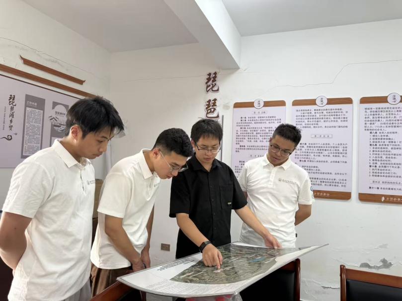 8 月 7 日,实践团首站抵十堰市郧阳区琵琶滩村,与 2018 级研究生毕业生、湖北省委选调生熊化琳汇合。在果树种植规划区,成员了解 2023-2025 年以果树为主的生态产业布局,熊化琳结合驻村经历讲解生态产业对乡村振兴的作用,让大家感受基层干部的务实规划。