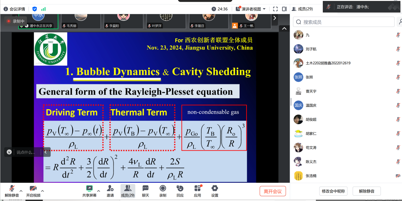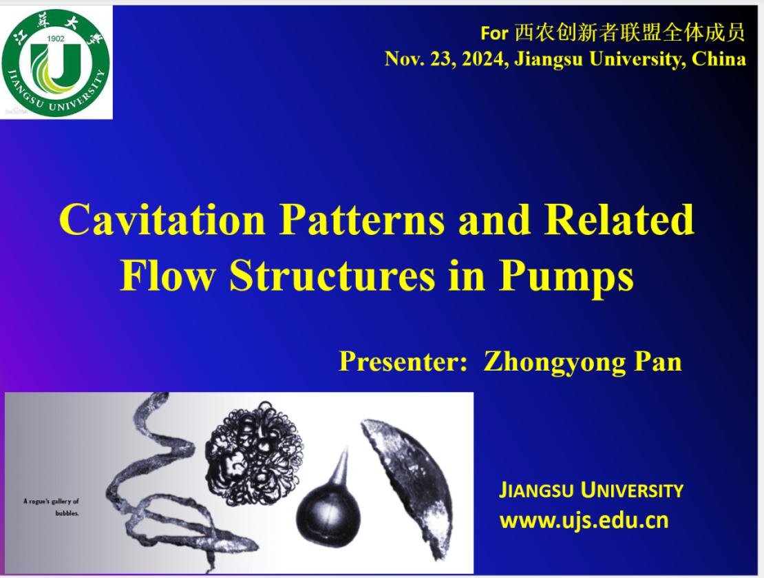为加强师生对泵中空化现象及其流体结构的认知,促进学术交流与科技进步,西农创新者联盟于11月23日通过腾讯会议平台举办了“Cavitation patterns and related flow structures in pumps”学术讲座。此次讲座邀请了江苏大学潘中永副研究员作为主讲嘉宾,吸引了来自不同专业的师生30余人在线参与。