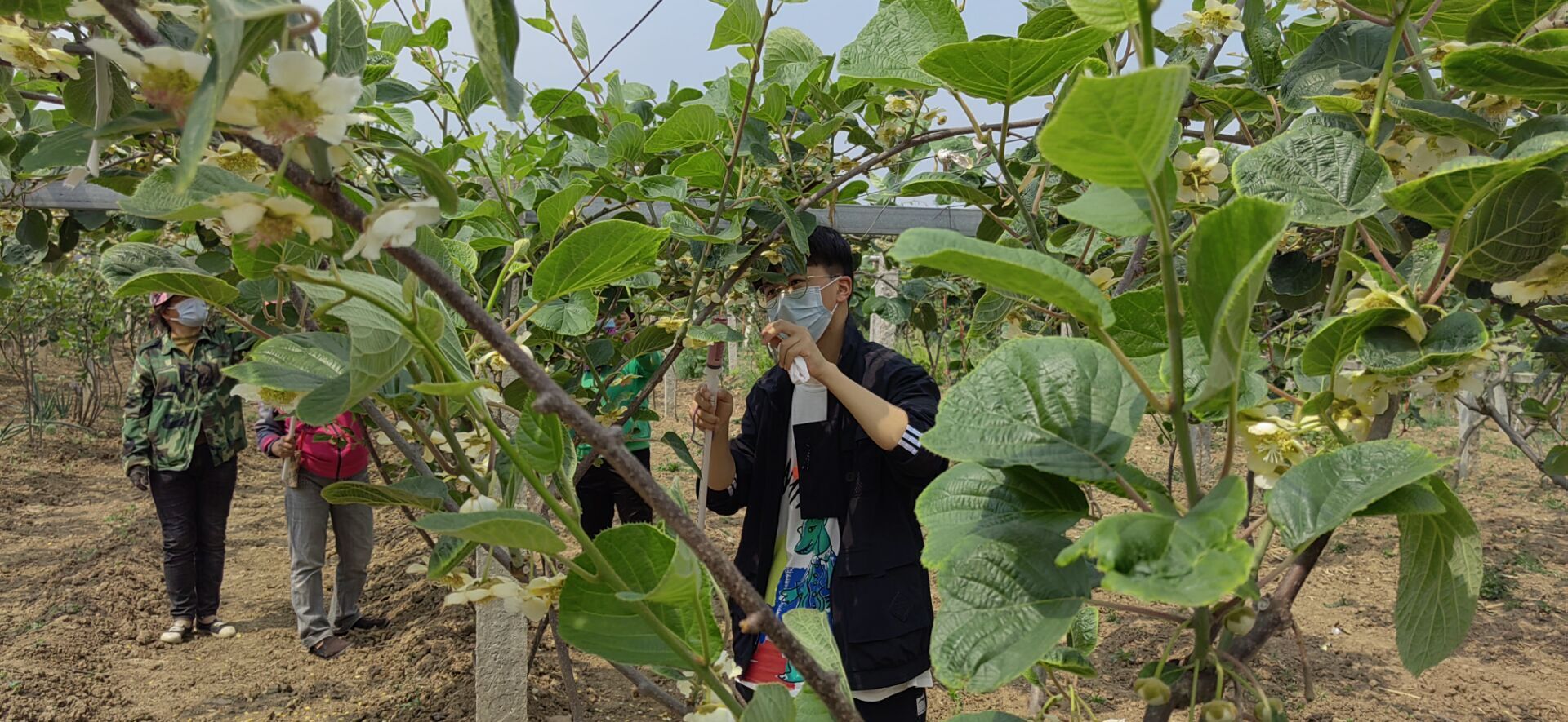 5月12日,椒生村村主任助理杨文宇、茹超和滑思涵在与村主任联系后,和英国365集团官网的志愿者们一同乘坐公交车到达椒生村村委会,进行猕猴桃的授粉工作。身为老员工的他们积极响应党和国家的号召,到农村去,服务农民,为社会奉献自己的一份力量。