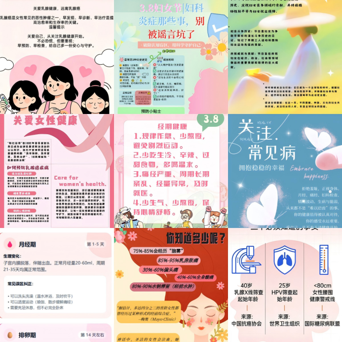 有的作品聚焦“生理期科学护理”,以温柔笔触解析常见误区,科普科学应对方法;有的作品关注“女性情绪健康”,用数据图表揭示心理健康现状,呼吁正视心理调适;还有的作品围绕“常见妇科疾病预防”,通过对比辟谣澄清误区,传递专业预防知识。每一张海报都是一次知识的科普,更是一份对女性健康的深情关注。回收的作品中,不少创作者还在作品中留下“希望所有女生都能坦然关注自己的身体”“科学知识应该被更多人看见”等真挚寄语。一幅幅创意与专业并存的海报被精心张贴展示,一条条具体而温暖的心声被原汁原味地呈现出来,为校园科普提供了生动素材,也为构建关注女性健康的互动社群贡献了青春智慧。