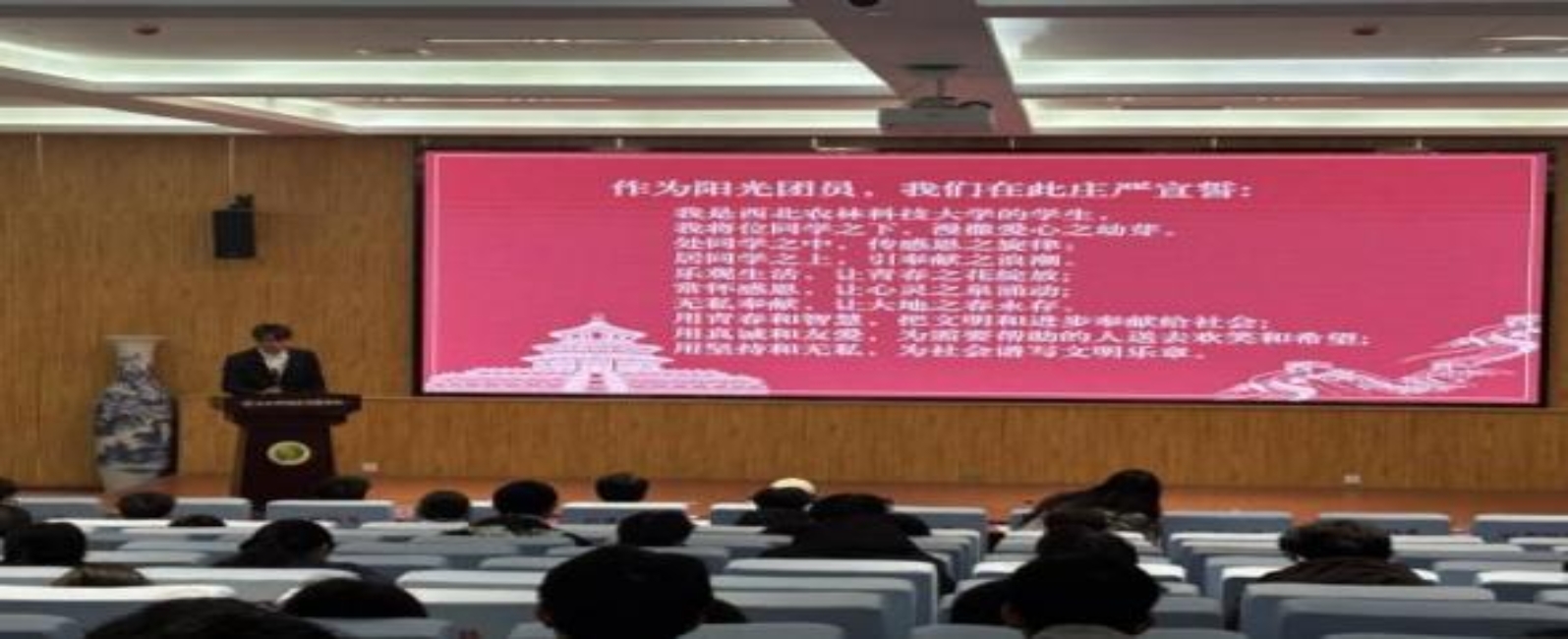 会议对《受助员工爱心实践活动管理考核细则》进行了解读与宣导,明确了实践要求与考核标准,并对优秀阳光团员进行表彰。最后,在王心成同学的带领下,全体团员庄严宣誓:“常怀感恩,让心灵之泉涌动;无私奉献,让大地之春永存”—— 铿锵誓言回荡全场,彰显阳光团员的责任担当。