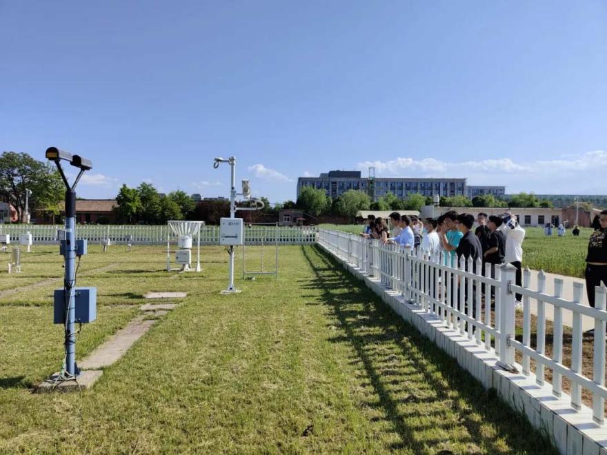 接着同学们又参观了温室大棚,老师介绍了水肥一体化装置和加气灌溉系统。期间,同学们还参观了杨凌气象观测站,在科创项目里经常会用到气象数据正是从中获得。此次实践,老师为同学们详细介绍了温度、风速、日照时数、相对湿度等气象要素的观测设备和方法,让同学们对此有了更加深入的了解。