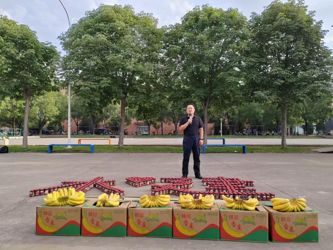 讲话结束后,孟庆涛亲自为参训师生发放了慰问品。一份份新鲜的香蕉,一杯杯营养的酸奶,传递着公司对学子们的深切关怀。同学们有序领取慰问品,脸上洋溢着欢乐的笑容。