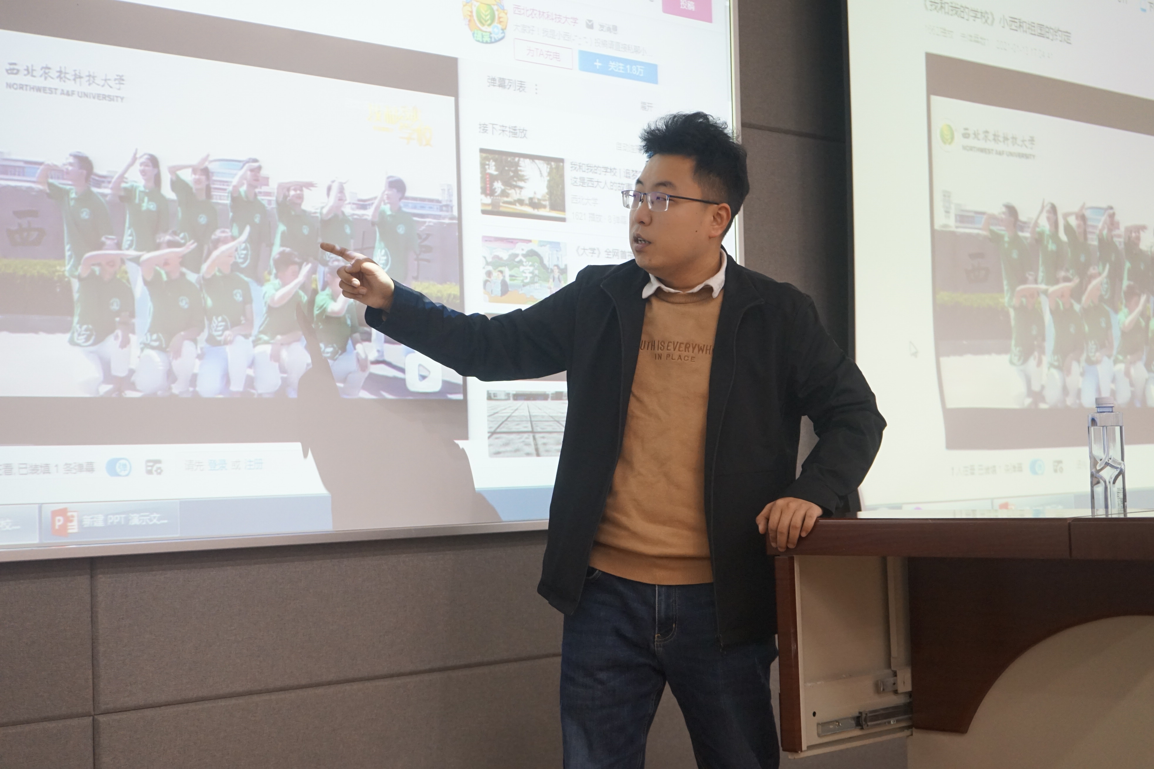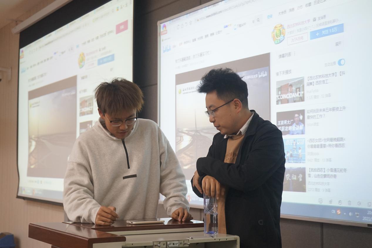 活动开始后,张老师通过点评公司官方账号在哔哩哔哩平台发布的短视频的亮点和缺点,从专业知识、实际应用两方面穿插讲解短视频制作的有关知识,重点对内容、画面和声音进行了讲解。同时点出了同学们在拍摄过程中容易出现的误区,并给出如何创作优秀短视频的建议。