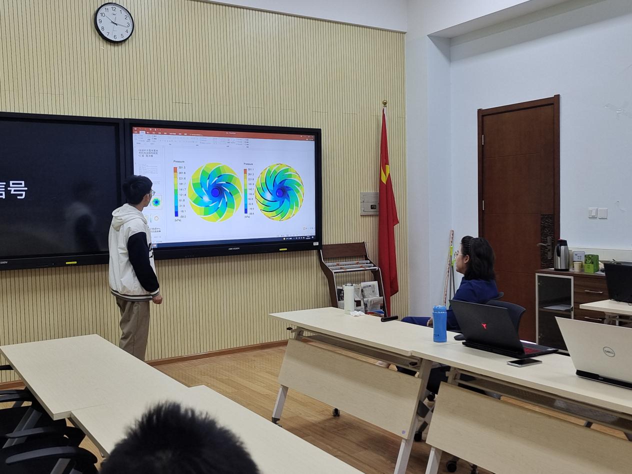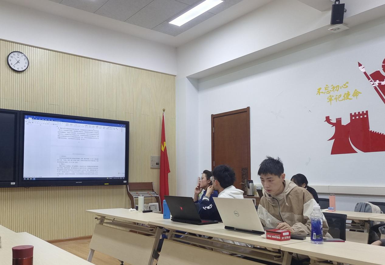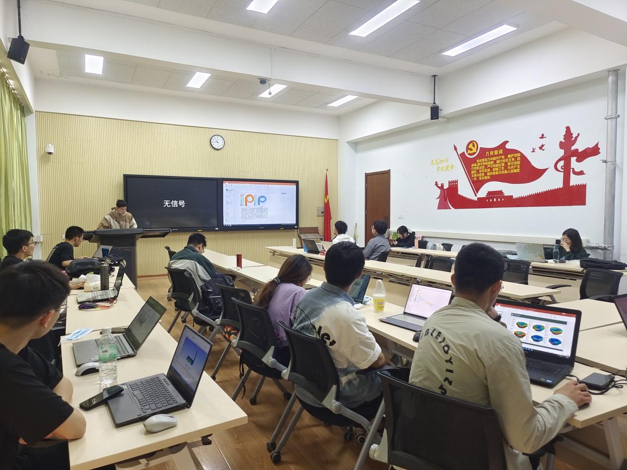 在主持人简短开场后,本次科创交流会正式开始。首先是本科生科创小组对近期研究内容进行汇报。一片欢迎的掌声落下,王鲁斌同学开始他的汇报,他首先简述了自己项目的内容,而后将自己对项目的创新点和想法进行阐述。在场的老师及同学们时不时或点头致以肯定和赞同,或迅速地将王鲁斌同学的闪光点以手写笔记的形式记下。汇报结束后,他提出了一些自己遇到的技术疑问和目前尚未完全解决的困难之处,经交流发现,他的小组及其他小组的成员也遇到了类似的问题。对此,指导老师毛秀丽及时耐心地作出了解答,同学们迅速将老师所传授的经验记下,并继续展开思考。