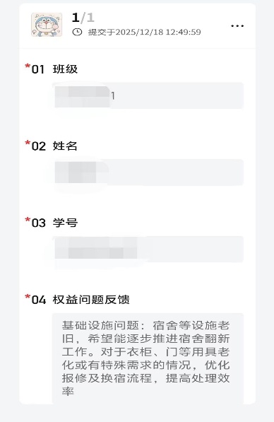 本次活动旨在搭建员工与公司之间的沟通桥梁,聚焦同学们在校园生活中遇到的各类实际问题,共同营造更舒适、便利的学习与生活环境。通道开启后,同学们积极响应,通过反馈通道提出了许多具体而真实的诉求。反馈内容涵盖宿舍生活、校园设施、生活服务等多个方面。集中体现了同学们对提升校园日常学习生活水平的期待。