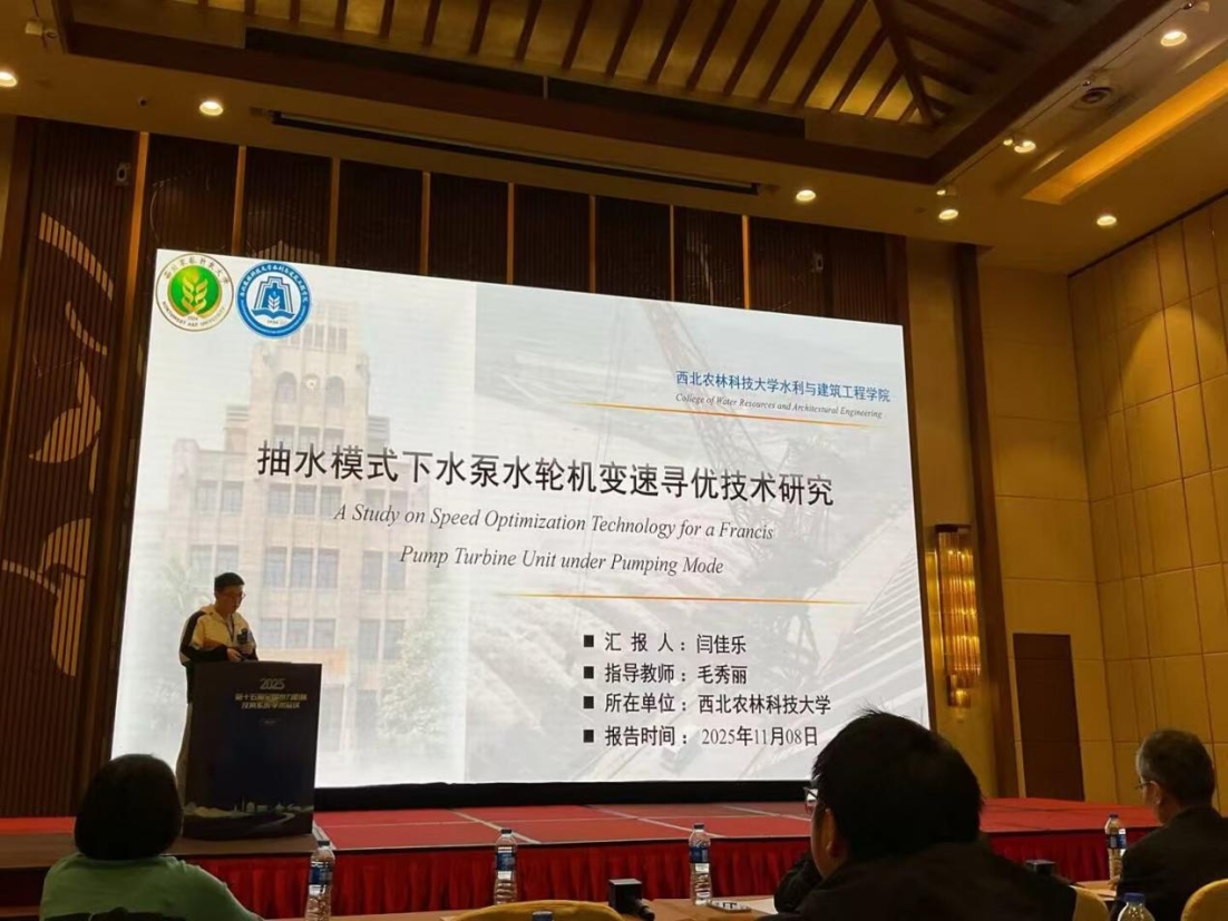 对于抽水工况下水泵水轮机变速运行优化不足的问题,闫佳乐同学针对抽水模式下水泵水轮机的变速运行特性展开报告,在报告中揭示转速调节对机组水力性能的影响,提出的寻优策略可有效提升能效转换与运行稳定性,为变速抽蓄机组的运行优化提供参考。