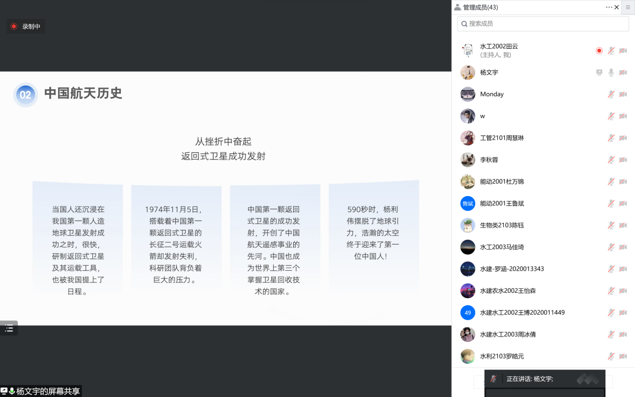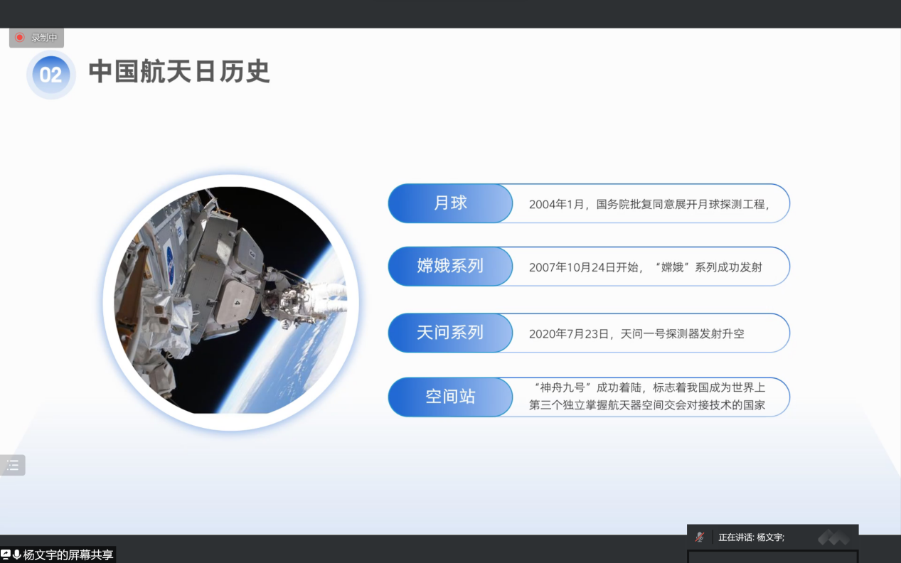 本次线上航天事业宣讲活动向同学们普及了中国航天事业的知识,助力夯实培养全方面高素质发展人才的基础,拓宽了同学们的知识面,大家收获颇丰,此次活动也取得圆满成功。