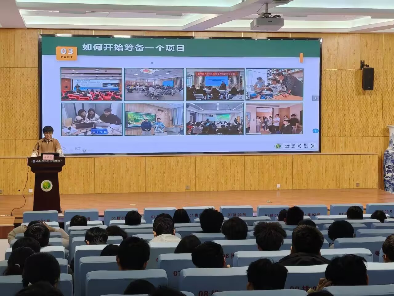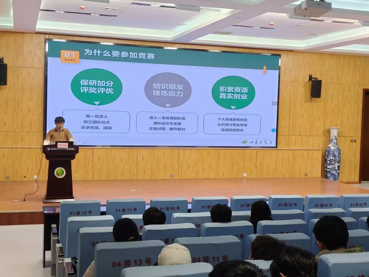 培训开始前,参会员工有序签到入场,现场气氛热烈。周立志围绕“互联网+”“挑战杯”等主流赛事,结合水利与土木学科特色,系统讲解了项目选题、计划书撰写、现场答辩等关键环节。针对国家奖学金评定中“学科竞赛获国家级一等奖及以上可申请破格资格”的政策,周老师重点解析了水利类项目的备赛要点,并通过往届获奖案例,深入阐释如何将节水灌溉、智慧水利等专业方向与赛事创新要求紧密结合。