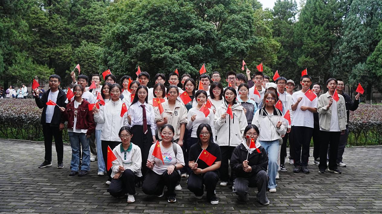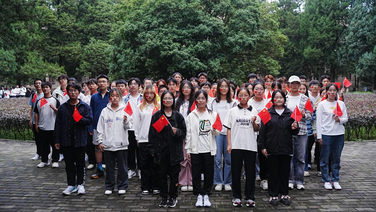 活动伊始,三号教学楼前已聚集了上百名学子。同学们手持小国旗,将贴画贴在右脸颊上;点点红旗与同学们青春的脸庞相互映衬,瞬间成为现场最动人的风景。镜头对准的刹那间,大家齐声喊出“祝祖国繁荣昌盛”的深情祝愿,誓言在空中久久回荡,铿锵有力。同学们或意气风发,展现昂扬斗志;或庄严肃立,表达崇高敬意。每一次快门按下,都是青春与祖国的深情对望;每一张笑脸绽放,都是赤子对祖国的无声礼赞。