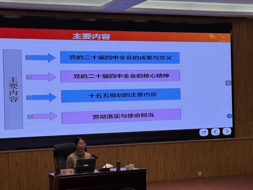 此次团课中,张丽老师紧紧围绕“党的二十届四中全会的成果与意义”“党的二十届四中全会的核心精神”“十五五规划的主要内容”“贯彻落实与使命担当”四大方面展开,重点阐述了当下中国特色社会主义取得的伟大成就与奋斗目标,并为同学们树立对社会主义制度的信心注入精神动力,激励大家将会议精神贯彻落实在平日的学习生活中。同学们积极参与互动,掌声不断,在理解会议精神方面得到深刻启发。