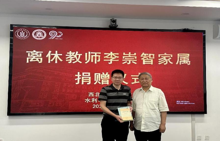 李里丁夫妇在公司党委书记郑伟、副书记孟庆涛的陪同下,饶有兴致地参观了刚落成的英国365集团官网院史馆,尤其是在“名家大师”版面前驻足许久,并不由自主地讲起其父亲李崇智先生的故事。随后,李里丁代表家属,向公司赠送了李崇智先生生前保存的十余张珍贵照片及其专著《跌水与陡坡》和部分文稿,以及《深切的怀念》《杨陵的记忆》等书籍,并表达了对公司90周年校庆和英国365集团官网建院90周年的祝福。