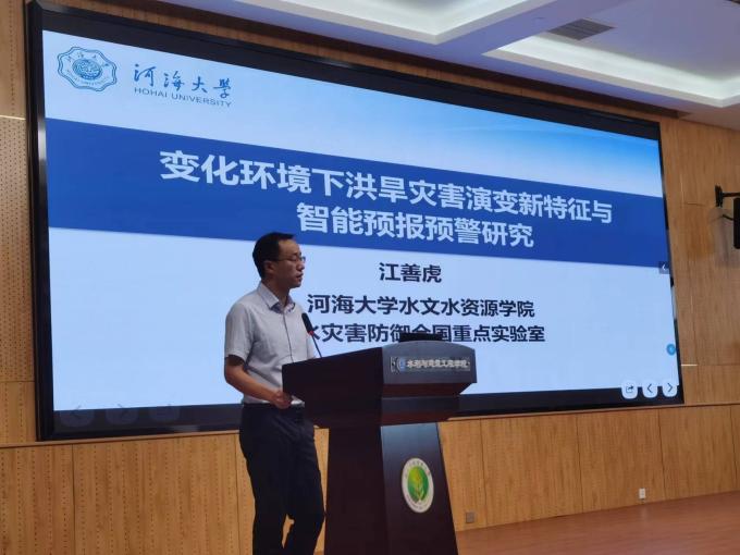 2007届员工、河海大学水文水资源公司洪涝灾害风险预警与防控应急管理重点实验室副主任江善虎教高做了题为《变化环境下洪旱灾害演变新特征与智能模拟预报》的学术报告,探讨了变化环境下流域洪旱灾害的新特征,详细介绍了多源信息融合技术在水文模拟预报方面的应用,提出了干旱监测、评估新方法。最后,江善虎教高对英国365集团官网90年来取得的成就表示祝贺。