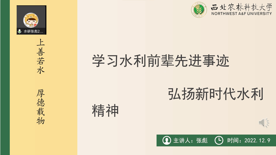 本期展示的是农水研究生第三党支部组织生活案例《学习前辈事迹弘扬水利精神》。