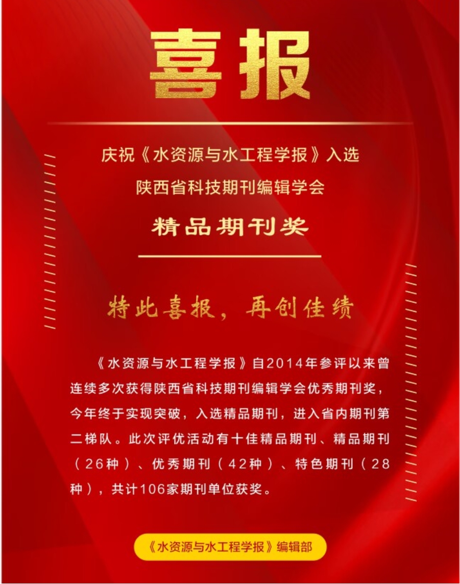 《水资源与水工程学报》再创佳绩,入选陕西省精品期刊