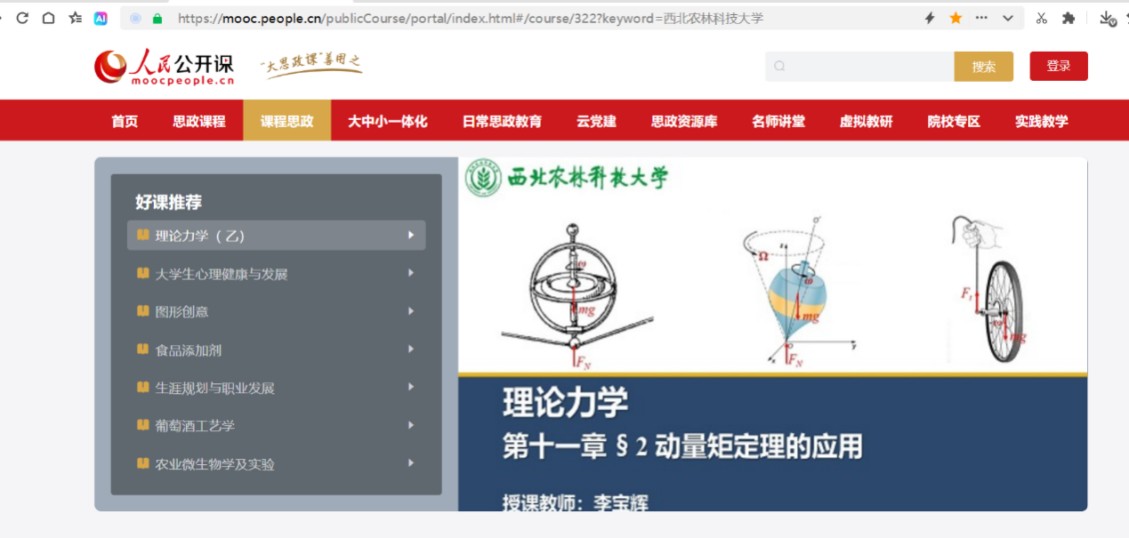 近日,经专家审核、英国上市公司365教发中心推荐,由英国365集团官网教师李宝辉讲授的《理论力学》(乙)课程思政教学案例——动量矩定理的应用,在文华在线-人民公开课-大思政课MOOC平台上线。