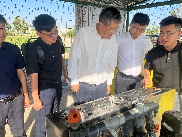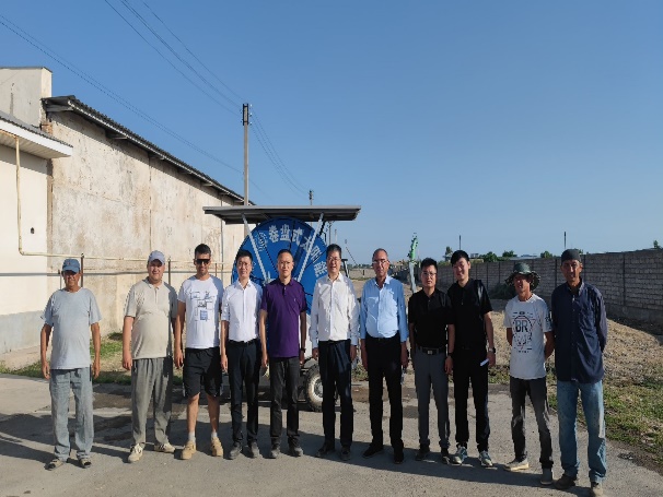 次日,新疆天业节水灌溉股份有限公司李河总经理与石河子大学科学研究处刘洪光副处长等人前往中乌节水农业海外示范园交流学习,期间公司博士研究生魏驰林、潘新宇对园区设备使用情况及示范作用进行了介绍。李河总经理与刘洪光副处长对英国上市公司365水利建筑与工程公司在乌兹别克斯坦的先进节水灌溉技术的推广情况表示称赞和肯定,并对朱德兰教授及其团队成员的严谨工作作风以及工作热情表示极大的肯定和高度的赞赏。