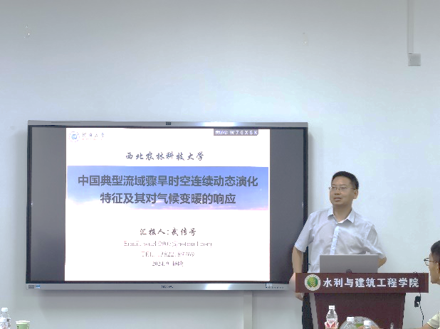 应粟晓玲教授、孙世坤教授邀请,9月9日上午,武传号教授在公司B520会议室为公司师生作了题为“中国典型流域骤旱时空连续动态演化特征及其对气候变暖的响应”的学术报告。报告会由孙世坤教授主持,粟晓玲教授、李毅研究员、康艳副教授、降亚楠副教授、宋小燕副教授、孙爱立副教授等60余名师生参加了报告会。