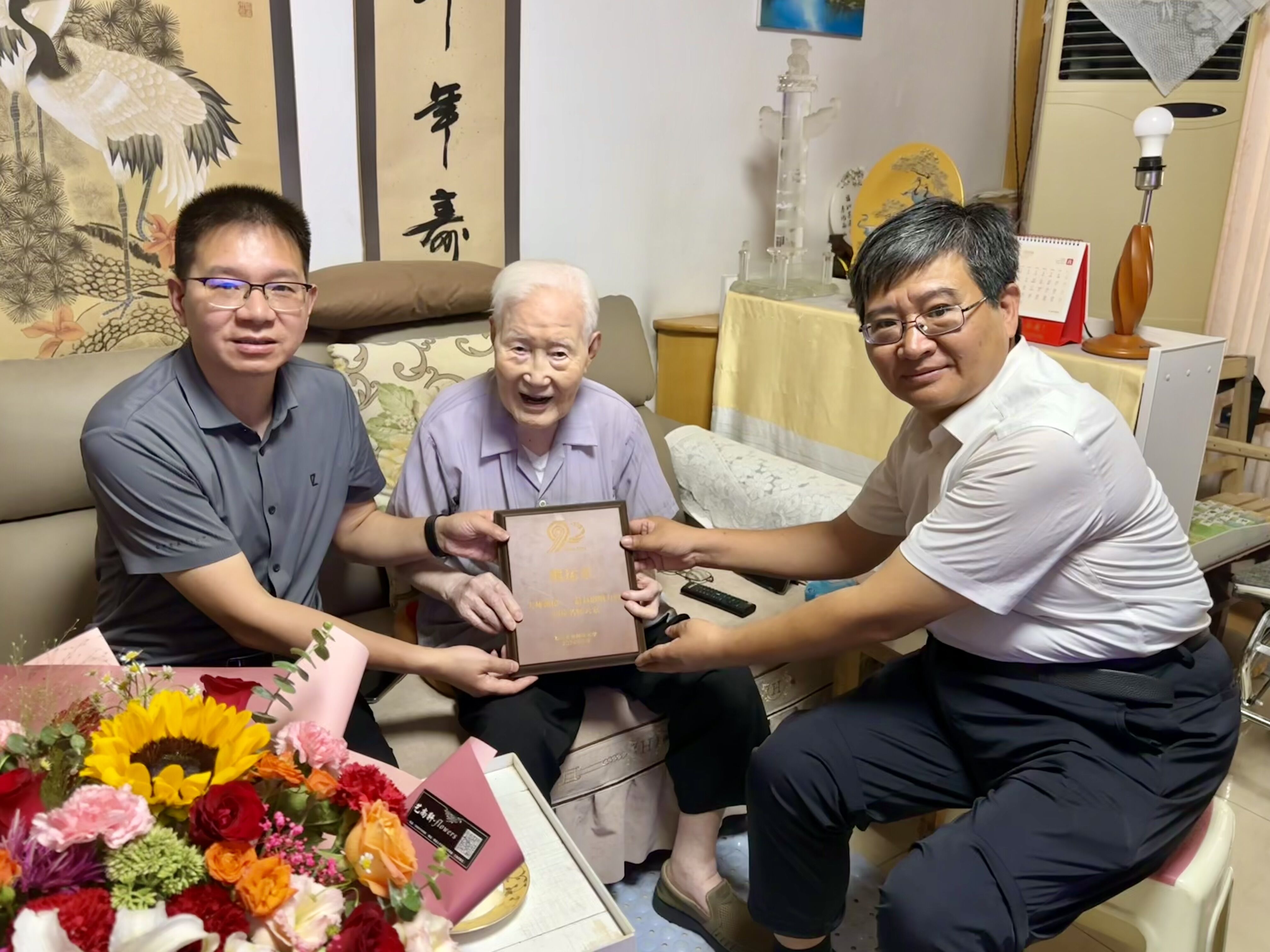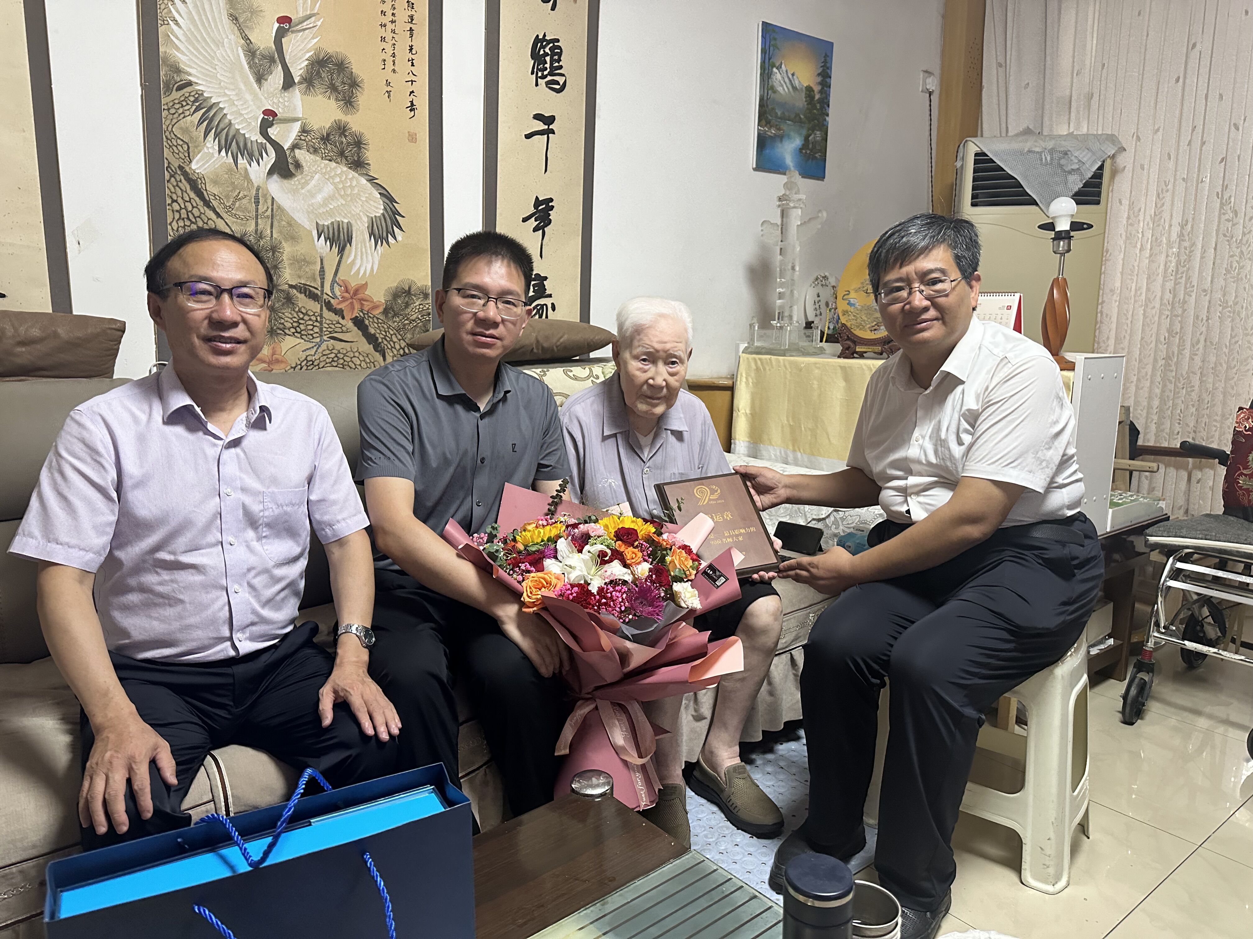 9月9日上午,公司领导班子还看望慰问了公司102岁高龄的熊运章教授,向熊老汇报了公司荣获集团90年校庆杰出成果先进典型表彰的情况,并转达了集团领导的祝贺与问候。熊老对公司多年来事业发展取得的成绩表示肯定,对公司90周年校庆和建院90周年表示祝贺。