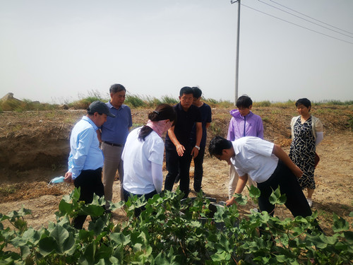 8月7日—8月9日期间,胡笑涛一行在新疆农垦科公司研究员、公司学术经理、中国工程院尹飞虎院士带领下,赴新疆生产建设兵团第三师图木舒克市进行考察,与三师农业科学研究所相关专家领导一起参观了尹院士团队正在开展的设施冬枣喷淋控温、棉花暗管排盐与棉花水肥一体化智能调控等试验示范区、以及农科所开展的棉花品种筛选、干播湿出试验示范区,与三师科技局和农业科学研究所进行了座谈,刘斌局长介绍了三师产业发展、项目合作、科技需求等情况,与会人员围绕依托院士工作室进一步加强校地合作进行了充分讨论与交流,并就项目申报达成了初步意向。学术经理尹院士要求公司认真落实合作意向,积极走出去,寻求与地方合作,确保科研成果能够落地见效,切实为包括新疆兵团在内的地方经济建设服务。