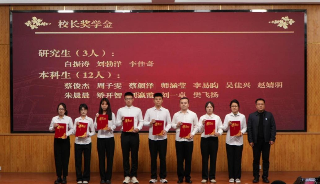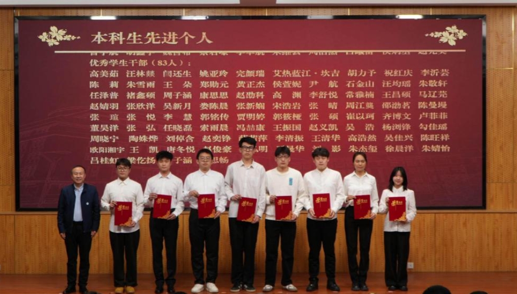 公司党委员工工作部部长赵静、公司经理胡笑涛为“先进班集体”“优良学风示范班”“学风建设成效班”获奖班级代表颁奖