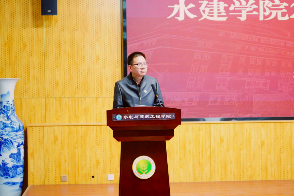 陕西省青年科技人才托举计划入选者冉聃颉老师,2025年度“水建之星—‘道德之星’”、员工团委副书记胡鑫宇同学分别发言,他们结合个人教学科研经历与学习历程,展现了新时代水利教育工作者的使命担当,表达了对公司的感恩之情和接续奋斗的决心。